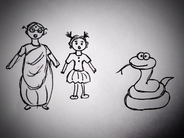 Now my sister’s ramblings started making sense to me. She was shouting, “Please save my didi! The snake will eat her!”.